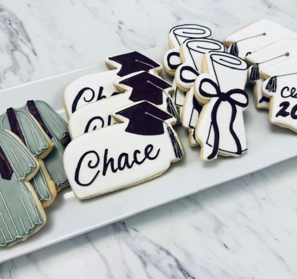 This set includes a mix of 12 decorated cookies colors customizable with up to 2 additional colors (in addition to black and white) please note your graduate’s name and what 2 additional colors you would like at checkout