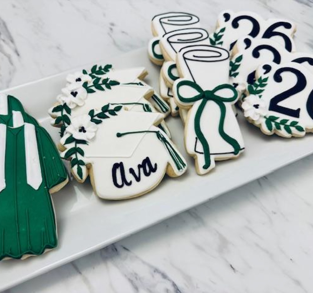 This set includes a mix of 12 decorated cookies colors customizable with up to 2 additional colors (in addition to black and white) please note your graduate’s name and what 2 additional colors you would like at checkout